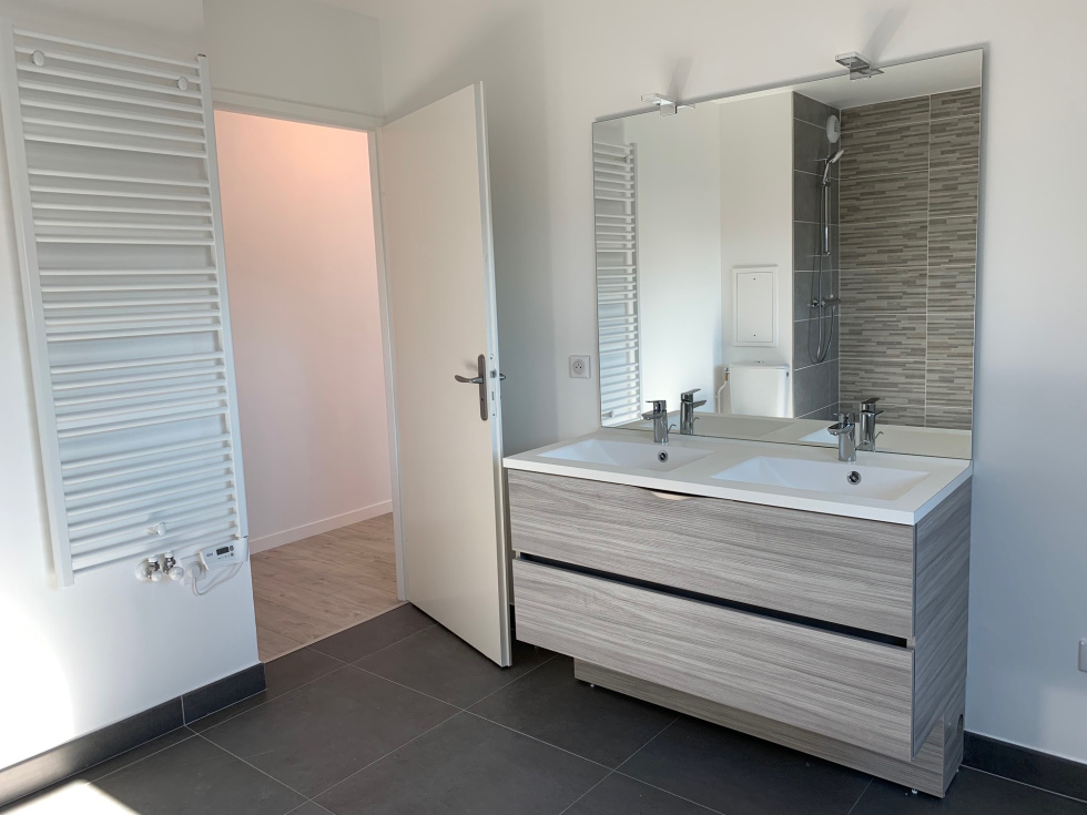 Immeuble neuf de 2019, Centre ville . reisdence de standing securisée avec vidéophone, ascenseur. Appartement de deux pièces, dernier étage, 2 balcons, parking sous sol ( loué 90 euros mensuel ) . Entrée, séjour, cuisine meublée et équipée, sale d'eau, WC, chauffage individuel au gaz. LIBRE DE SUITE.