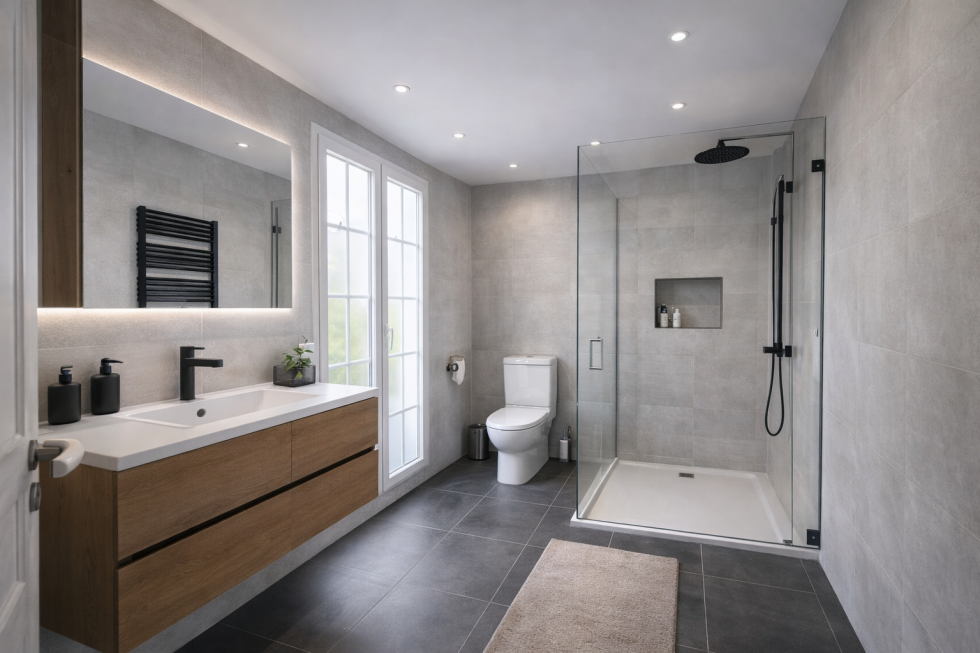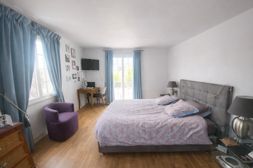 Le premier étage est entièrement réservé aux parents : une suite spacieuse avec dressing, salle de bain et terrasse plein sud de 45 m² pour profiter d’un café au soleil en toute tranquillité.
